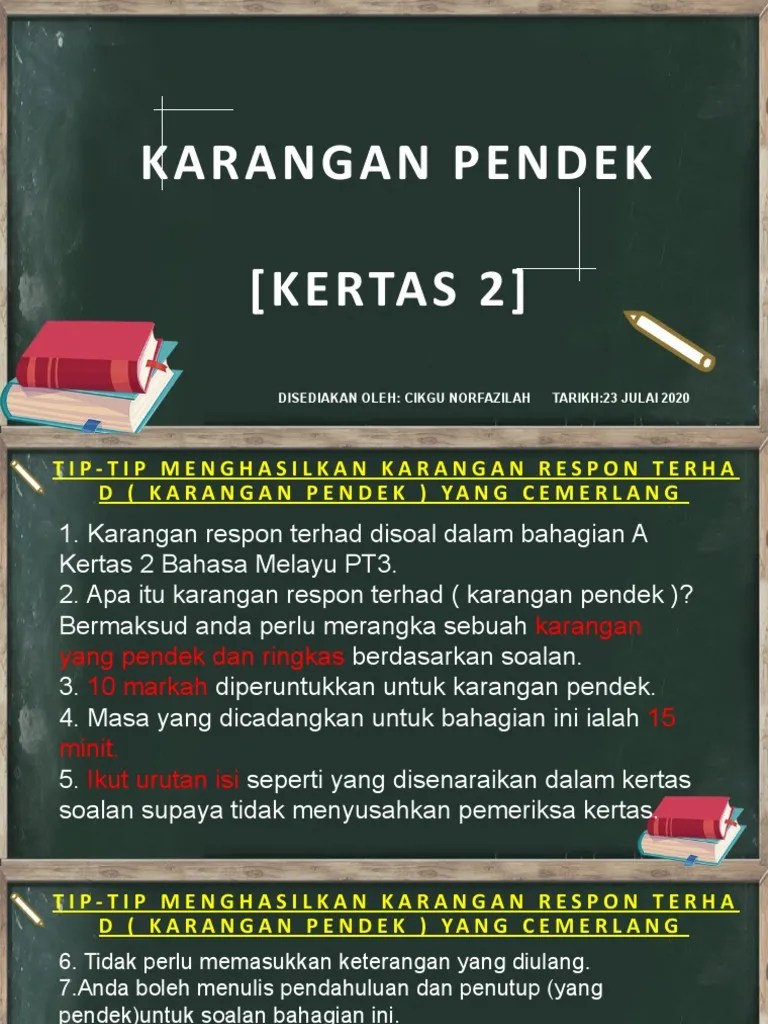 Format Karangan Pendek Tingkatan 1 : Modul 3 Karangan Respons Terhad Pdf Format Baharu Pt3 2019 Modul Karangan Respons Terhad 3 Karangan Pendek Kertas 2 Pt3 Bahagian A Course Hero. Kunci jawaban soal (sd, smp, sma) berikut adalah kunci jawaban dari pertanyaan "jika joko memiliki uang dua kali lebih banyak daripada uang yang dimilikinya sekarang, ia akan memiliki cukup uang untuk membeli 3 potong pisang goreng dengan harga rp 960 per potong dan 2 botol air mineral dengan harga rp 1.280 per botol. Video 1 video 2 contoh karangan pendek sila salin soalan & contoh. 2) penilaian diri (self assessment) penilaian diri digunakan untuk memberikan penguatan (reinforcement) terhadap kemajuan proses belajar peserta didik.